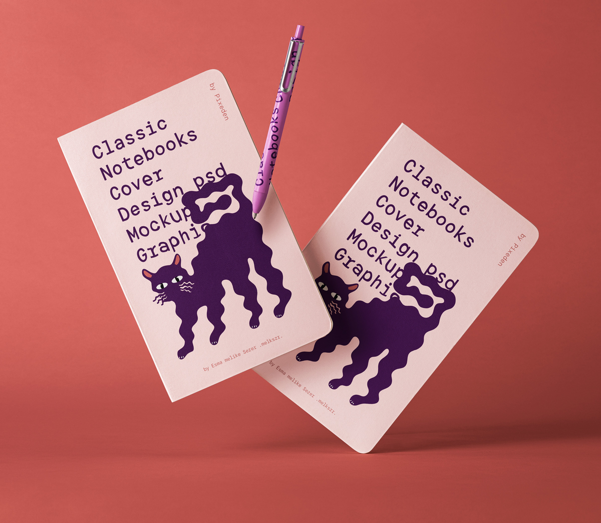 A psd mockup of classic notebooks with cover designs, perfect for stationery, identity, and branding displays.
