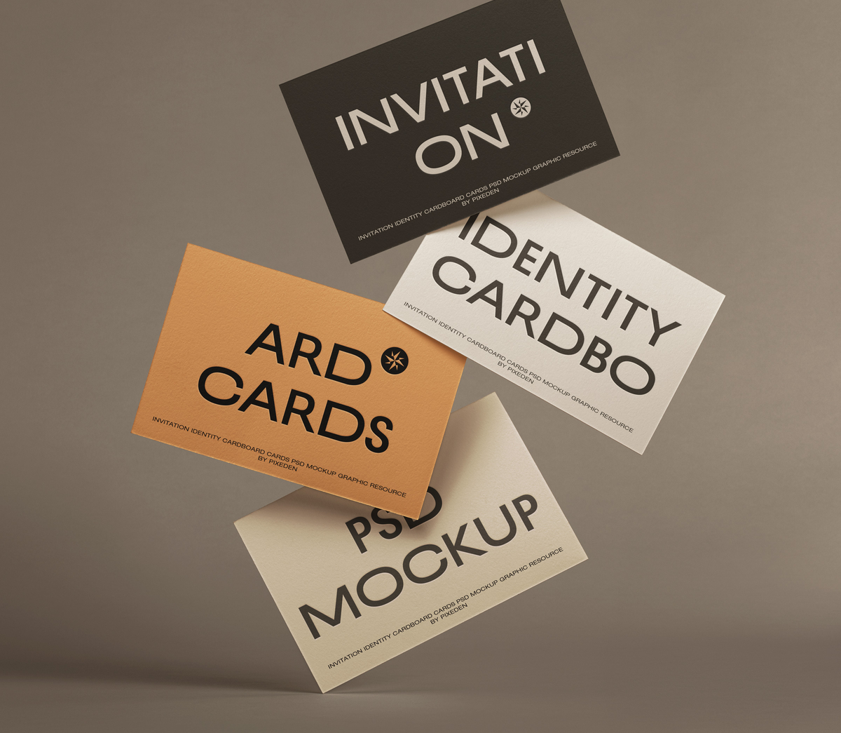 A psd mockup of cardboard invitation cards, ideal for stationery and branding identity design presentations.