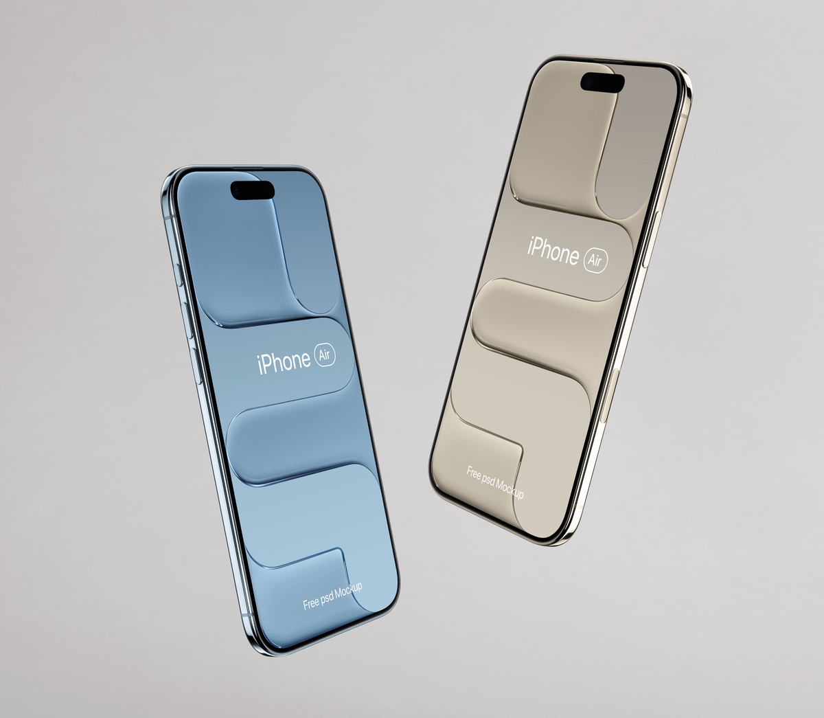 A psd mockup showcasing iPhone Air screens for app and UI design presentations.