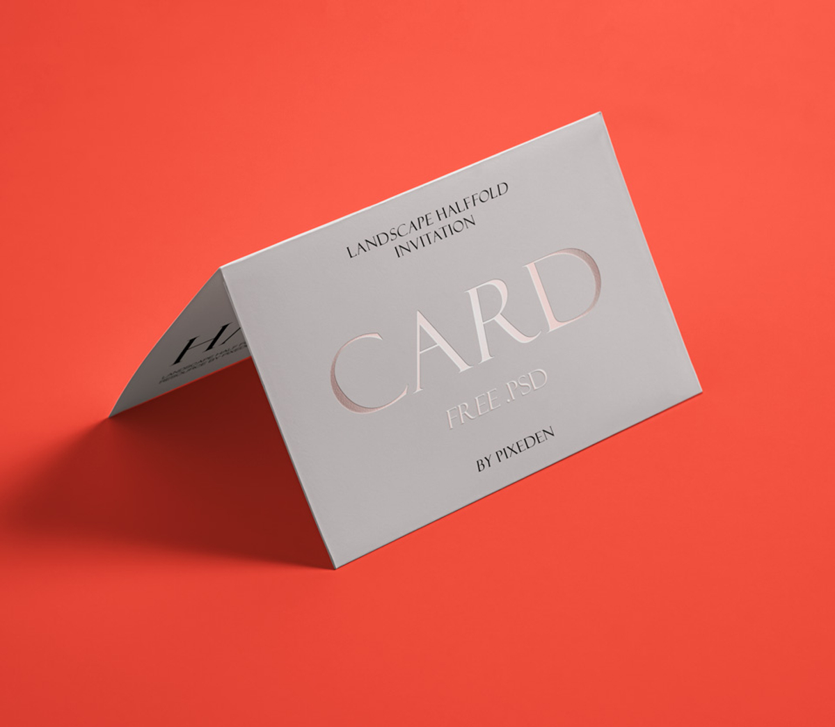 Landscape Half Fold Invitation Brand Card Psd Mockup