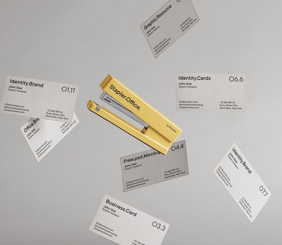 A psd mockup of office-style business cards for professional identity branding presentations.